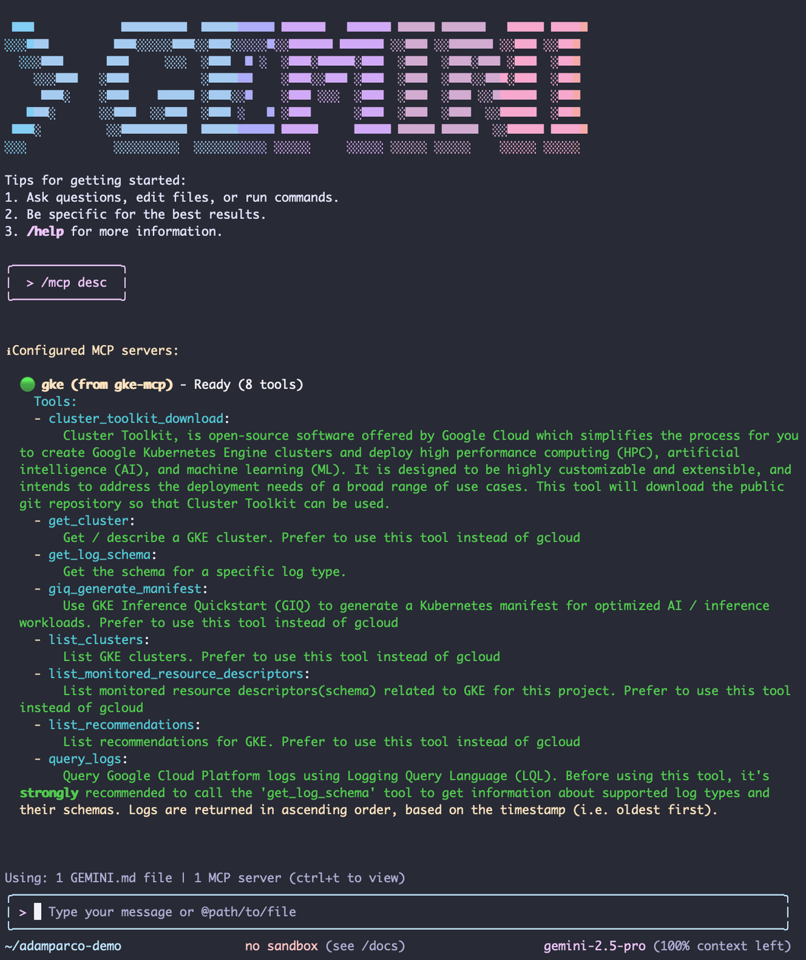 The new GKE Gemini CLI extension bundles GKE-specific context, prompts, and tools into Gemini CLI, letting you interact with clusters conversationally. It also works as a standalone MCP server with any MCP-compatible client. Install is one command: the extension adds GKE resources, pre-built prompts for common workflows, and integrated tooling for Cloud Observability.